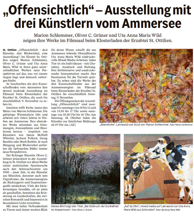Oktober 2025: Midissage der Kunstausstellung „OFFEN | SICHTLICH“ im Filmsaal St. Ottilien – Werke von Marys Kunst verbindet, Ute Anna Maria Wild und Oliver C. Grüner